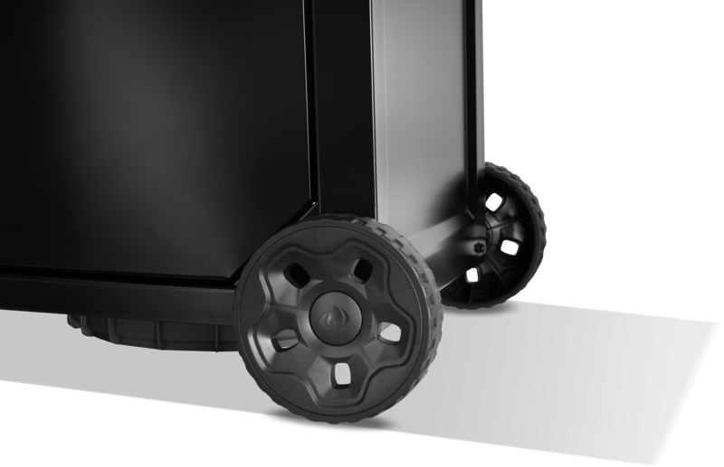 Pomocí velkých koleček z tvrzeného plastu gril jednoduše přesunete, kam bude potřeba.