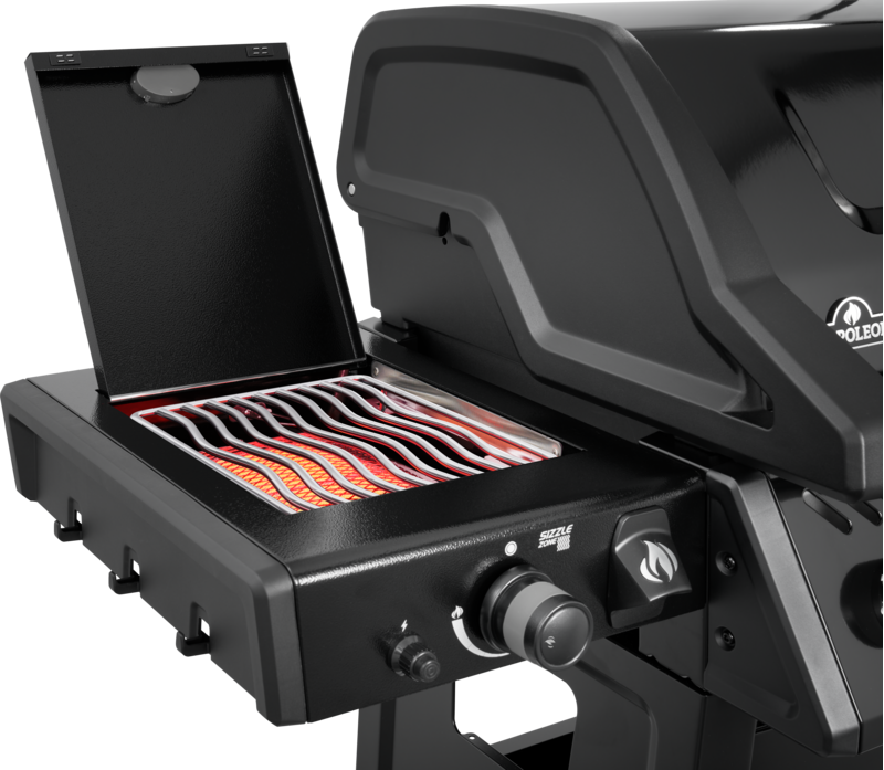 Infračervený boční hořák dokáže vyvinout teplotu až 800 °C. Díky tomu na něm perfektně zatáhnete steak a všechna šťáva zůstane uvnitř anebo ho můžete využít jako klasickou boční plotýnku třeba na přípravu omáčky.