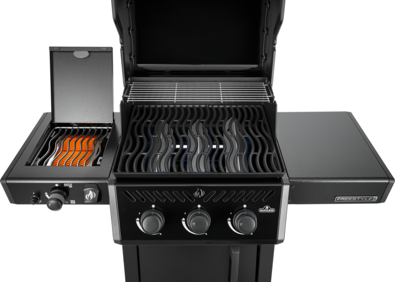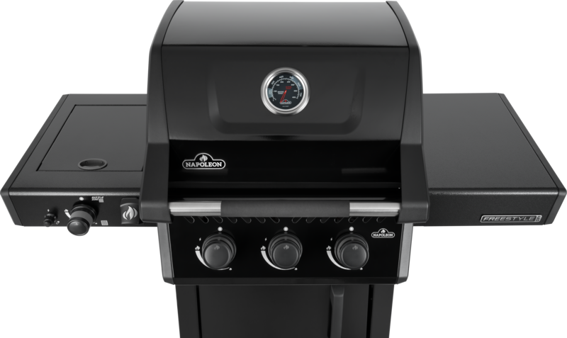 Plynový gril FREESTYLE 365 se třemi nerezovými hořáky a Sizzle zone nabízí skvělý poměr cena x výkon. Má prémiové vlastnosti grilů Napoleon jako systém zapalování JETFIRE, Sizzle Zone, porcelánem smaltovaný litinový rošt WAVE, robustní kolečka pro snadné přemístění grilu nebo velkorysé odkládací plochy, jednu sklopnou polici, háčky na grilovací nářadí, otvírák na pivo a designové dveře. To vše za skvělou cenu.