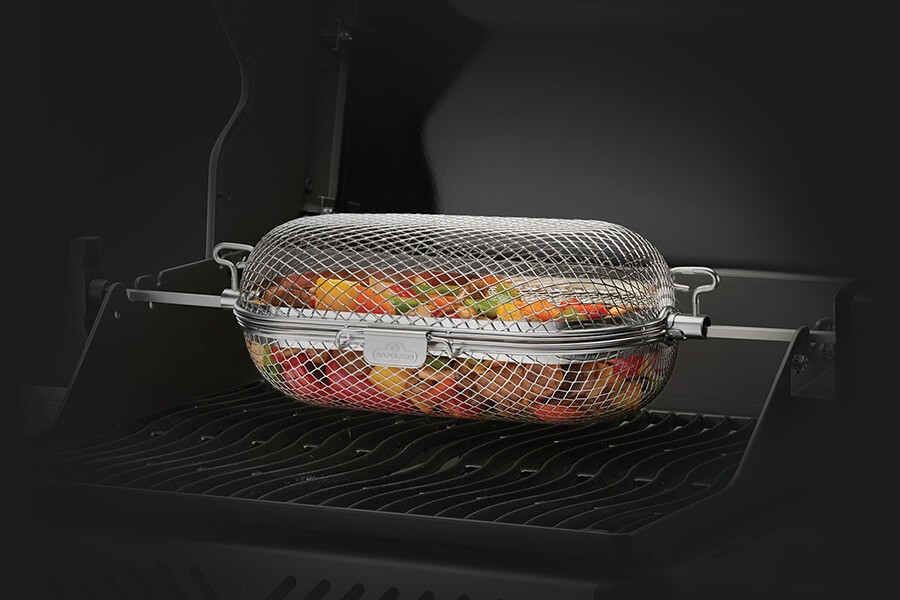 Pomocník pro grilování zeleniny, hranolek, amerických brambor nebo kuřecích křidélek bez přidání oleje. Koš pasuje na většinu typů našich grilů, nasazuje se na jehlici elektrického rožně. Vyroben je z nerezové oceli pro snadnou údržbu.