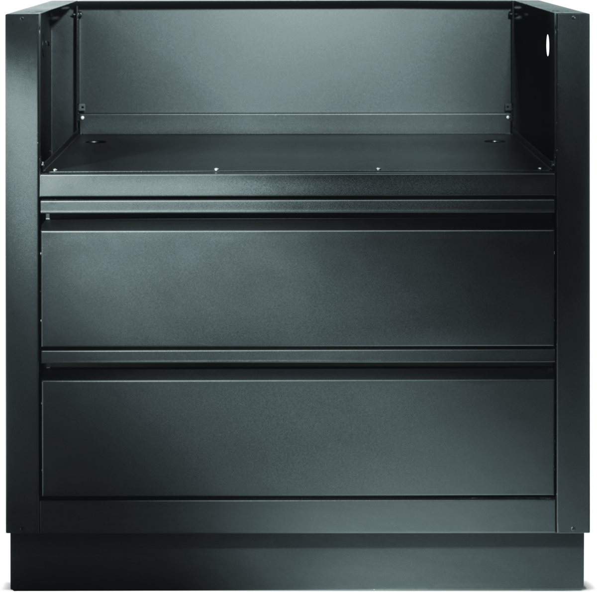 Matně černá skříň určená pro vestavěné grily, je extrémně odolná. Obsahuje dvě zásuvky na hladkých pojezdech, otvory pro vedení plynu a elektřinu. Díky nastavitelným nohám bude stát v rovině i na nerovném povrchu.