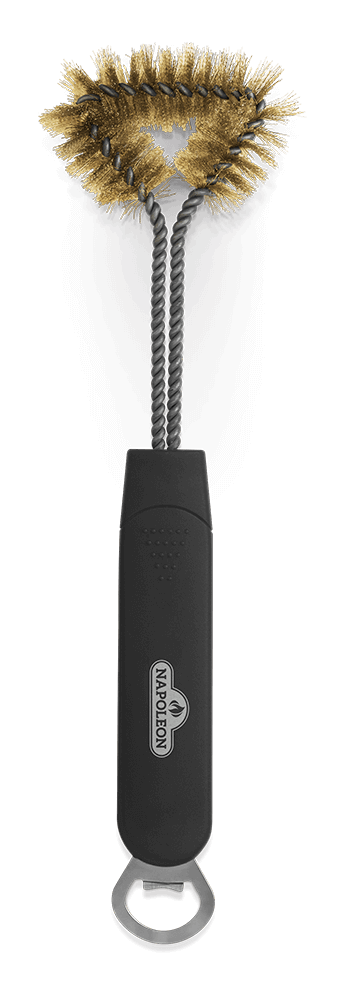 Kompaktní kartáč s mosaznými štětinami vám pomůže udržet porcelánem smaltované litinové mřížky vašeho grilu čisté i na cestách. Gril doporučujeme čistit, když je ještě horký, jde to nejsnáze. Abyste si při práci nespálili ruce, zabalili jsme rukojeť do odolného plastu. Na konci rukojeti najdete praktické poutko, které je zároveň otvírákem na lahve.