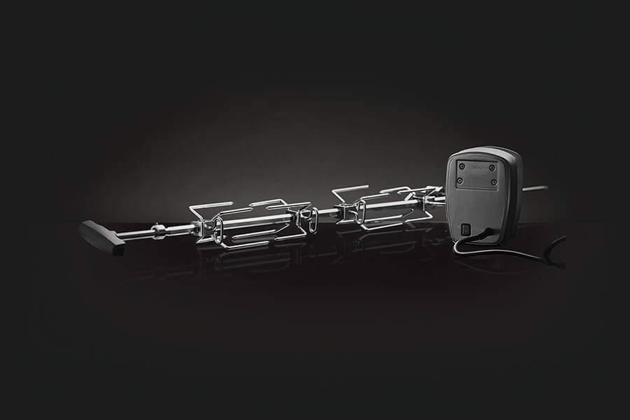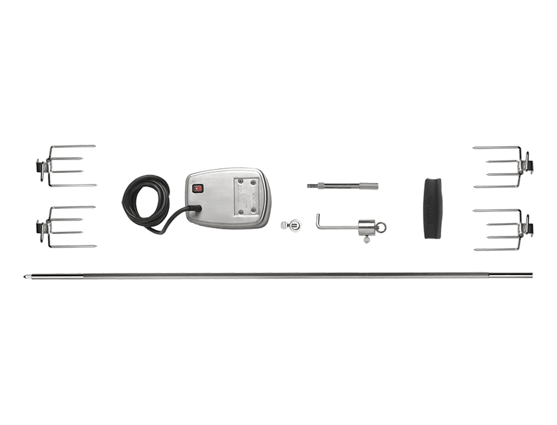 Otočný rožeň pro velké grily s označením Bilex řady 605. Šestihranná středová jehla je vyrobena z potravinářské nerezové oceli pro jednoduchou údržbu, motor si dokáže poradit až s 25 kilogramy masa. Pro správné vyvážení a držení slouží dvě čtyřzubé vidlice, které zajistí, že při grilování všechno zůstane tam, kde má. Sada se skládá z motoru, samotného rožně, dvou čtyřzubých vidlic a protizávaží (pro vyvážení masa a zajištění plynulého chodu). Motor se zapojuje do elektricé sítě a má parametry 220 V / 4 W.